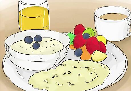 Start your day with an apple. It might not seem much, but it's easy and healthy. One apple is the best food you can have for breakfast, according to some. Try to have at least 6 apples somewhere in your room. Keep them at a low temperature level, and make them a mixture of red, green, and yellow; After all, eating only one type each day will make you hate it later.