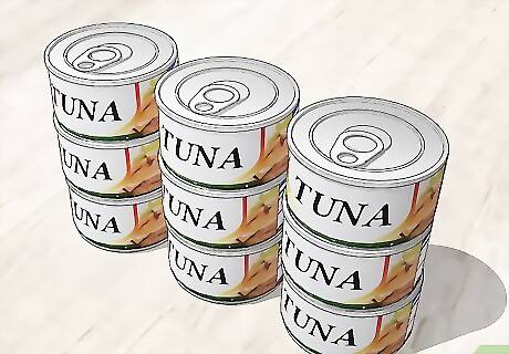 Stock your pantry with tuna fish. Tuna fish sandwiches on toast is delicious and healthy. Tuna fish is also a good addition to egg noodles for a delicious casserole. You can purchase tuna fish packed in oil or water, depending on your taste preference.