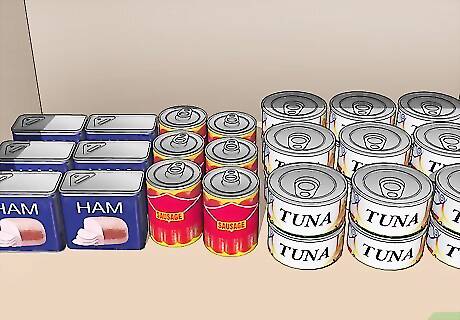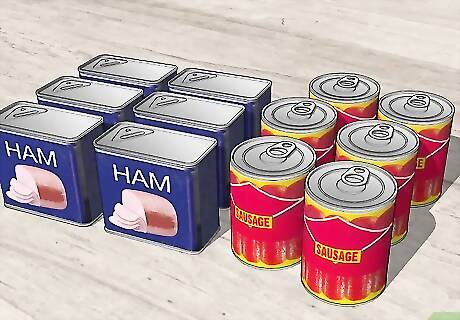 Store pre-cooked meats like canned ham and sausage. Use pre-cooked meats as a source of protein without having to worry about the cook time of fresh meats.