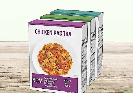 Cook with boxed dinners when possible. There are a variety of dinners that come in boxes with all ingredients included except meat. Just add hamburger or tuna to these boxed meals and you get a full dinner in less than an hour. Boxed meals provide a lot of variety and aren’t expensive, so you save money, save time, and get tasty meals.