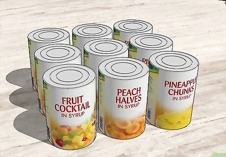 Purchase plenty of canned fruit. There are different types of canned fruit. Canned fruit for baking has the consistency of pie filling. If you want to keep it healthy, avoid heavy syrup and buy canned fruit packed in natural juices or light syrup.