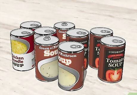 Buy a variety of soups. Soups taste good as quick stand-alone meals, but they also go well with sandwiches and can be used in cooking. This makes soup a versatile and convenient item to keep on hand.