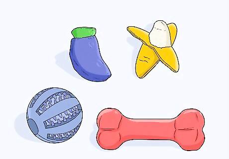 Provide plenty of other toys for your puppy to chew on. Chewing is a normal behavior for dogs. You can help them pick the right things to chew by providing toys, bones, and balls for them to chew on instead of their bed. Keep a wide variety of toys in your home so your puppy has some options to choose from. If you already have a lot of toys for your puppy, they might be bored of the ones that you have. Try putting half of the toys away for 1 day and then switching them out to vary your puppy’s entertainment.