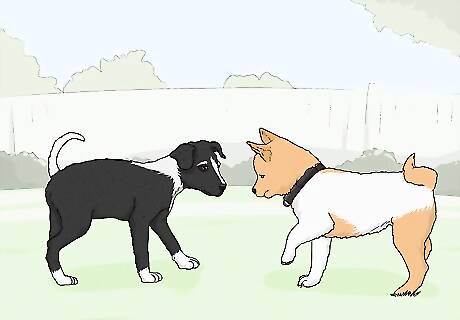 Let your puppy play with other dogs for some social stimulation. Just like humans, dogs need to interact with others to stay healthy and happy. Take your dog to a dog park or set up a dog playdate so your puppy can “talk” with other dogs and make new friends. If your puppy isn’t vaccinated yet, hold off on letting them play with other dogs. Your puppy could catch or spread dangerous viruses that they aren’t equipped to fight off yet.