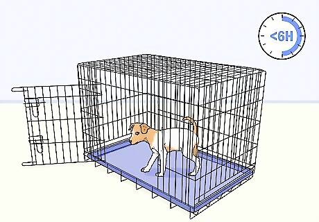 Avoid leaving your dog in a crate for more than 6 hours at a time. Puppies have a lot of energy and need to be active every single day. Try to take them out of their crate as often as you can, and never leave them cooped up for longer than 6 hours. If you have to go to work and leave your puppy alone, consider hiring a dog walker to let your puppy out in the middle of the day for some exercise.