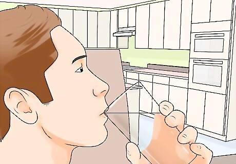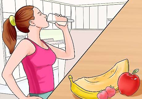 Rehydrate yourself. Insufficient water levels may decrease the pressure inside your arteries, which can then limit how much blood gets into the lining around your brain. This can cause migraines in some people. Any time you exercise, try to drink water while working out, or at least be sure to rehydrate as soon as you get back from your run to help get blood flowing back to your brain. The amount of water you drink depends on how much you exercised and how much you sweat. As a general rule, your urine should be clear or almost clear when you are sufficiently hydrated. Dark urine is a sign of dehydration. Stay hydrated before exercising to prevent dehydration during your workout.