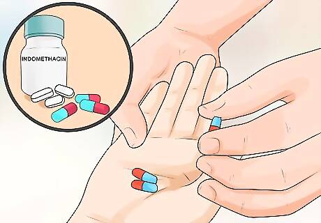 Treat a primary exercise headache. There are a number of prescription medications available that can help treat primary exercise headaches and their causes. Some people with predictable exercise headaches may be able to take medication before a planned workout, while others who experience erratic or unpredictable exercise headaches may need to take medication on a daily basis. Talk to your doctor if you believe you need a prescription-strength medication to treat primary exercise headaches. Common medications include: Indomethacin — this non-steroidal anti-inflammatory medication (NSAID) is commonly prescribed to treat pain and inflammation. It may help treat moderate to severe primary exercise headaches. If you are taking indomethacin, talk to your doctor about any other health issues you or your family have experienced. NSAIDs (not including aspirin) have been linked with an increased risk of heart attack or stroke. Propranolol — this prescription-strength blood pressure medication may help prevent primary exercise headaches in some people. Propranolol alters the body's response to nerve impulses, which may help lessen pain associated with conditions like exercise headaches. Naproxen — this NSAID is commonly used to treat arthritis pain. It has been shown to be effective at treating headache pain in some people. Naproxen is available in both prescription and over-the-counter forms. If you are taking naproxen, talk to your doctor about any other health issues you or your family have experienced. NSAIDs (not including aspirin) have been linked with an increased risk of heart attack or stroke. Phenelzine — this prescription-strength medication belongs to the monoamine oxidase inhibitor (MAOI) class of antidepressants. It may help treat the symptoms of exercise headaches in some people. Ergonovine — this prescription-strength medication is typically prescribed to treat hemorrhaging caused by giving birth. Some studies suggest ergonovine may help treat exercise headaches in some people.