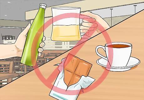 Maintain a healthy diet. Certain nutritional factors have been shown to trigger headaches and migraines in some individuals. In general, it's best to avoid consuming alcohol or caffeine if you are prone to exercise headaches or migraines. Avoid processed, fermented, pickled, or marinated foods if you are prone to migraines, as these foods may cause headaches in some individuals. Do not skip meals if you know you are prone to exercise headaches or migraines. Skipping meals has been shown to cause headaches in some individuals.