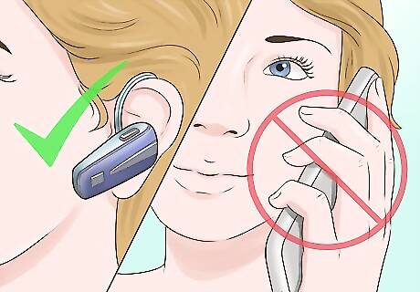 Put down your phone. Because most people take them everywhere (even to the bathroom) and touch them constantly, cellular phones are covered in bacteria. Whenever you talk on your phones, you are rubbing those bacteria all over your face. This can lead to breakouts on your cheeks and chin. To avoid any phone-related breakouts, consider using your phone's speaker function or getting a hands-free Bluetooth headpiece. You can also minimize phone-related breakouts by regularly cleaning your phone with antibacterial wipes.