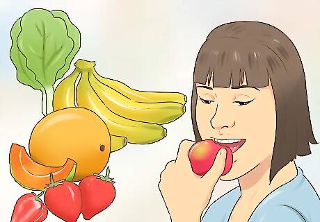 Eat healthy. Although the idea that eating certain foods, like chocolate, can lead to acne is a myth, diet does influence the body’s hormone levels, which can cause breakouts. In order to avoid breakouts, try to eat a balanced diet that is high in fruits, non-starchy vegetables, and whole grains. You should also avoid fatty, sugary, or processed foods. Eating a healthy and balanced diet will help regulate your hormones and prevent problematic breakouts.