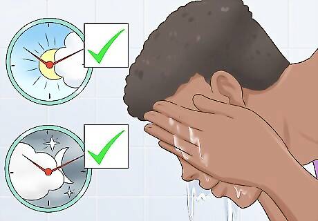 Clean your skin regularly. To avoid acne, you should wash acne-prone areas only twice a day. Washing your skin removes oil and dead skin that can lead to breakouts. When you are looking for acne creams or gels, look for something with either benzoyl peroxide or salicylic acid as the active ingredient. Avoid over washing your skin, which can dry out and irritate it. If you are unsure about what kind of wash to get, talk to your doctor or dermatologist.