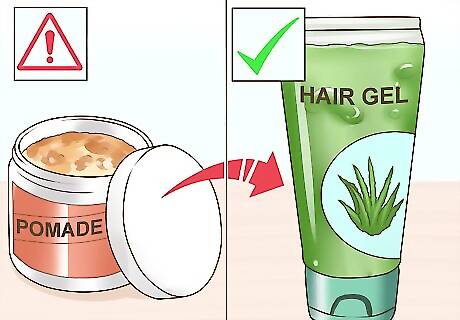 Change your hair products. If you suffer from breakouts on your forehead, scalp, neck, and back, the culprit may be your hair products. Products like gels, pomades, and sprays tend to block pores and irritate your skin. They can also cause allergic reactions that can result in acne. To avoid acne, experiment with different products to find one that does not irritate your skin. In general, look for products with shorter and more natural ingredient lists. In particular, look for products that are fragrance-free and noncomedogenic (non-pore clogging). To avoid using too much product, consider washing your hair two or three times a week or rinse it with conditioner daily. You might also want to consider sleeping with your hair up to avoid rolling around in your dirty hair all night. If you believe that you are having an allergic reaction to a certain product, quit using it and talk to your doctor or a dermatologist. You may want to be tested so you know what to avoid in the future.