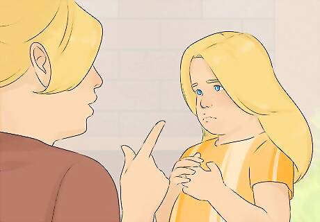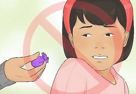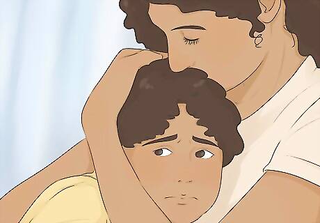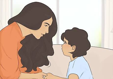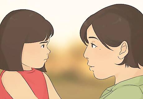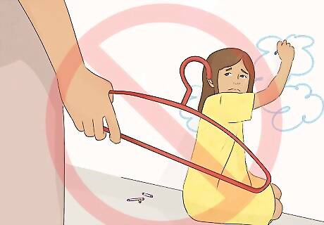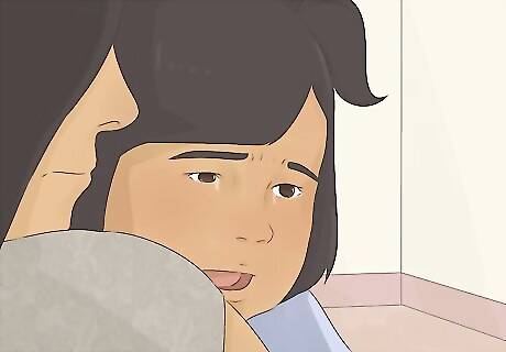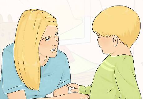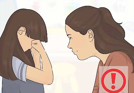Step in and remove a child from harming themselves or others. Place the child in a safe place away from others. If you must restrain them physically, hold them firmly until they have calmed down enough to let them go. Some children will kick and hit and struggle to get free from the restraint. Protect yourself as best as possible and remain determined and calm. Speak calmly and reassuringly throughout the process: “I know you’re upset right now, but everything will be OK. Let’s both try to calm down together.”