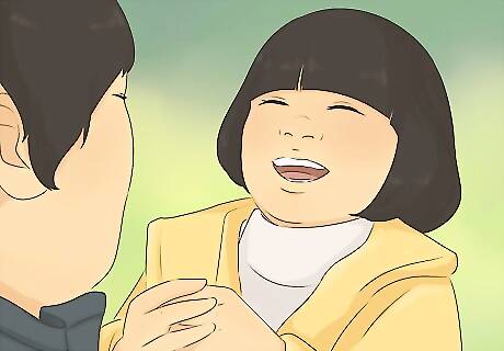 Attempt to incorporate humor into a tense or stressful situation. Children will often forget what is upsetting them if you can get them to laugh before a temper tantrum begins. Try saying or doing something silly out of the blue. Put a bowl on your head and ask “Do you like my new hat?” or blurt out “Let’s have a silly face contest—what do you think of this one?”