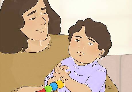 Anticipate tantrums based on your child’s personality and history. Some children naturally have a calm, relaxed disposition, and have infrequent tantrums. Others are higher strung, moody, and hyperactive, and are more apt to have regular outbursts. Base your prevention strategies on the frequency and timing of tantrums that the child has shown previously. If the child has infrequent tantrums, it may be easier to pinpoint specific scenarios—such as being cooped up in the car for hours—that trigger them. If the child has regular tantrums, it may be more useful to look for physical or emotional signs of an oncoming tantrum, as opposed to trying to predict what circumstances might cause one. You can also anticipate and distract the child from their tantrum triggers. For example, if your child is triggered by cleanup time, then you might take them into another room while someone else cleans up.