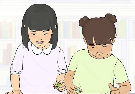 Build their sharing skills if sharing problems cause tantrums. Take notice of how well the child shares with other children. If you see that they have a particular difficulty with sharing, work on their social skills and try to incorporate sharing into their playtime routine. When dealing with 2 children, introduce sharing as a trade-off: “You’ll play with the rocket ship for 5 minutes, then you’ll switch toys with Ben and play with the race car for 5 minutes.” Never miss an opportunity to praise them for sharing: “Thank you so much for sharing your crayon with your sister, Johanna!”