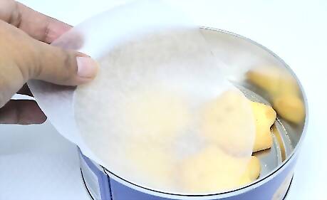 Cut a few pieces of parchment or waxed paper to size. Place your container on a piece of parchment paper, and cut around it with kitchen scissors. Do this a few times so that you have several pieces of paper. In most cases, you will need about three or four cut pieces of paper, but this can vary based on the size of your container.