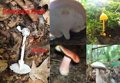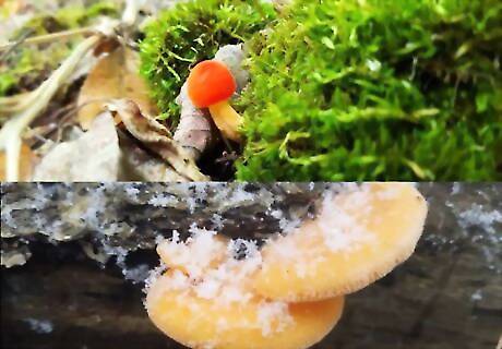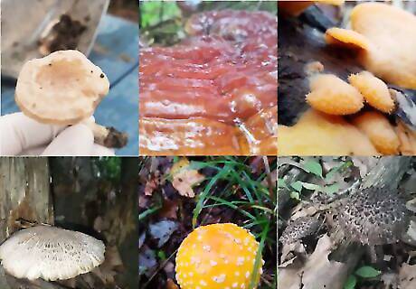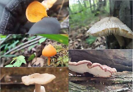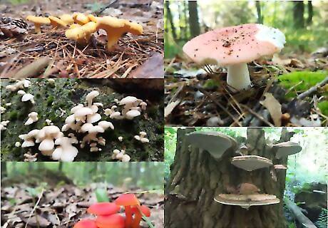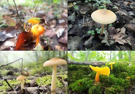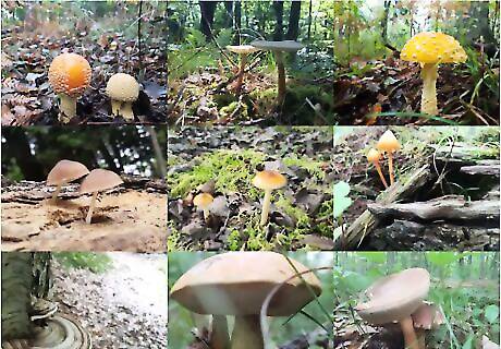 Discover what mushrooms you would expect to find based on your location and time of year. Research what mushrooms are naturally found in your area of the world; this will narrow your list of possible species tremendously. Notice the time of year and temperature. Some mushrooms are only found in a certain season (spring/summer/fall/winter).