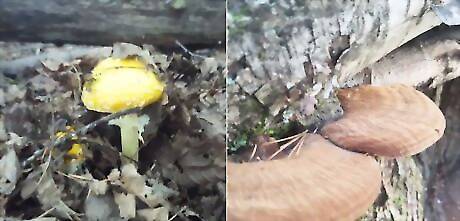 Locate the what the fungus is growing on: Organic matter: Through leaf litter Compost Soil On wood: Live or decaying wood Hardwood or softwood Species of tree