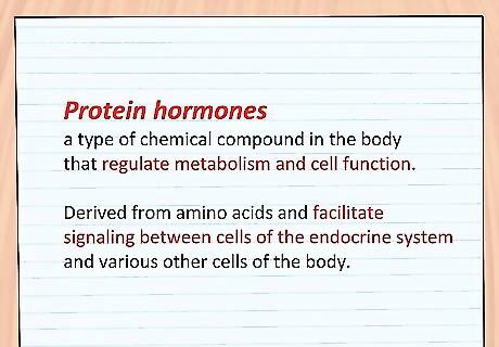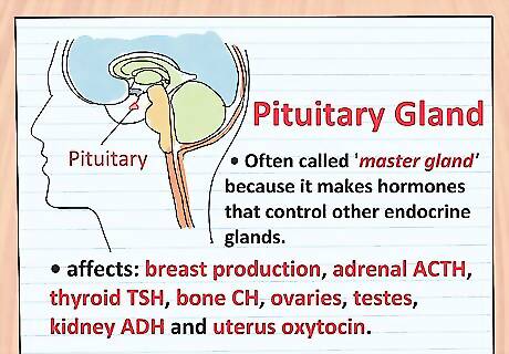 Make flashcards for each hormone. The easiest way to study the function of individual hormones is to make flashcards for them. Write the hormone on one side and write its function on the other side. You can flip through the cards until you have them all memorized. Flashcards are a great way to study because they are easily transportable and you can study a few at a time. Take them out when you are waiting around or riding the bus/train to school to get in a short study session.