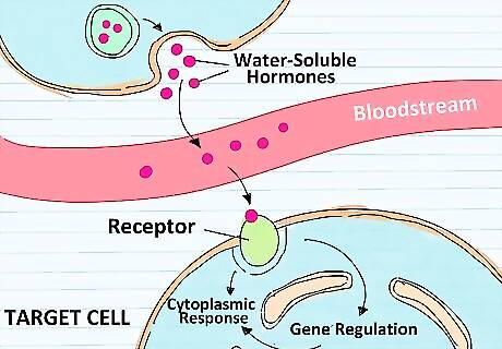 Recognize the importance of water-solubility. Because protein hormones are water-soluble, they can easily travel through the bloodstream which is water-based. For the hormones that are secreted and then act on cells far away from their original source, this is particularly important. Once they are secreted, they can travel directly through the bloodstream to get to the cells they need to act on elsewhere in the body. Steroidal hormones are also capable of traveling through the bloodstream, but they need to be attached to carrier proteins that are water soluble in order to do this. When they get to their destination, they are released from the protein carrier and then travel through the plasma membrane into the cell.