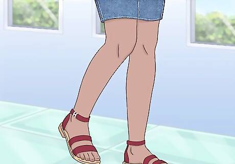Try sandals or flats for a casual look. As denim is generally more casual, sandals are appropriate footwear for the warmer months. During cooler months, a cute pair of flats can be paired with denim for a casual look. For example, wear a short denim skirt with a tank-top and sandals for a beach day.