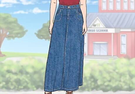 Try a maxi skirt for more coverage. If length is an issue, try a maxi cuts. These skirts usually go down to your feet. This can be an excellent choice if you're wearing a skirt to an establishment that has rules about length. If your school or office, for example, requires longer skirts, go for a maxi skirt.
