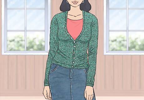 Layer with jackets or cardigans. Jackets or cardigans can be great to wear over denim, especially if you're wearing a lighter top. This can add some dimension to your look and serve to keep you warm if you're wearing denim during the colder months. For example, if you're wearing a t-shirt with denim, throw a leather jacket or light cardigan over the shirt for the day.