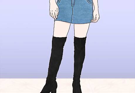 Pair the skirt with boots for a more formal look. Boots are a slightly more formal accessory that work great for the cooler months. You can pair denim skirts with knee-high boots or ankle boots. Dress boots can work if you're wearing denim to the office.