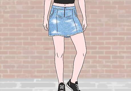 Go for a faded or frayed skirt for something informal. Denim skirts are often made with faded fabric that is sometimes even frayed on the end. If you're looking for something very casual, with a bit of an edgy vibe, a faded, frayed skirt can be great. Faded fabric may have a lighter wash overall. Other faded fabric may be dark in certain places, but faded in patches here and there.