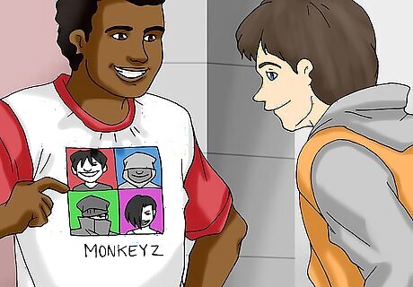 Wear T-shirts and other merchandise to show support. One of the best ways to spread the word of a band is to wear their merch in public. Eye-catching designs will draw interest from other people and ask where the clothes are from. Direct them to the band’s site and let them know about their music too. If anyone asks you where a shirt or hat is from, tell them something like, “This really great band sells these. You should check them out!”