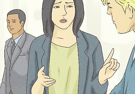 Call out racism when you see it in action. Witnessing racism can be very troubling, and it can be hard to know what to do in the moment. However, remember that any time you speak out or take action, you’re sending a message that racist behavior is unacceptable. Try to say or do something, even if it’s hard. For example, if you feel like your boss is overlooking contributions from a Black co-worker, you could say, “Excuse me, I think we should hear what Mary has to say about this. She’s been working hard on this project and knows more about it than anyone.” If you see racist harassment in a public place, try to stay calm. Say something like, “Leave him alone. That’s uncalled for.” Or, you can try moving closer to the victim and asking them if they’re okay. People might get defensive or lash out if you call them out on their racist behavior. Remind yourself that the problem is with them and you’re doing the right thing by speaking up.