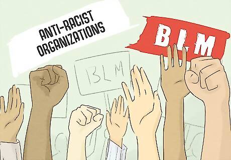 Volunteer with anti-racist organizations if you can spare your time. You can make a major difference by giving your time and skills to support the cause. Contact an activist organization in your area and ask how you can help. Some possible ways to volunteer include: Making calls or going door-to-door to raise funds or give out educational materials Making food for large gatherings or events Helping protestors or social justice workers by offering childcare, rides, or meals Sewing masks or making signs for people attending rallies or protests