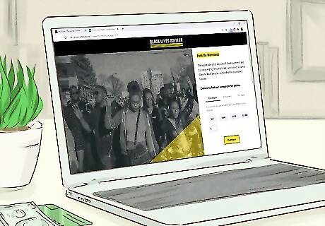 Donate money to organizations that support racial justice. One of the best ways to support the BLM movement is to donate to organizations that are taking action against racism. Consider setting up a recurring monthly donation so that you can keep supporting the organization(s) you like best. If you’re not sure where to donate, look at a list of organizations and funds like this one: https://nymag.com/strategist/article/where-to-donate-for-black-lives-matter.html. These organizations can use your donations to pay their staff, fund educational campaigns, influence local policymakers, or directly help those in need (such as people who have been unfairly arrested or imprisoned). You can donate directly to the official Black Lives Matter organization here: https://secure.actblue.com/donate/ms_blm_homepage_2019. Other highly rated civil rights organizations include the ACLU, the Equal Justice Initiative, the NAACP, and the Public Justice Center. You can also make a difference by donating your money to public bail funds, mutual aid networks, and crowdfunding campaigns to support the families of Black people who lost their lives to police brutality or hate crimes.