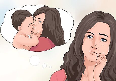 Consider the responsibilities of child care. Pregnancy is a big step toward more responsibility. Raising a child requires maturity. If you are planning to have the child, and the baby's father is not involved, think about what child care may look like in the future. Do you plan to raise your child? Where will you live? Who will you live with? Are the people who you're planning to stay with responsible and willing to participate in child care? How do you plan to support your child? Talk with your relatives about the challenges that they may have faced with child care. Understand what supports will be available for you after a child's birth. Go to a community center for pregnant teens or talk a school counselor about child care. There may be low or no-cost childcare assistance options in your area for teen mothers. Many states offer financial aid and childcare care assistance while you are attending school. It is an incentive to continue school while caring for your baby.