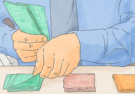 Open new accounts with a small deposit. For most financial institutions, you’ll need to visit a branch location to open a new account. Online-only banking, of course, can be done entirely online. Either way, read through the fine print before signing anything, and pay particular attention to any fees associated with your account. There will often be a minimum initial deposit to open an account with a new institution. There’s no rush to deposit any more than that, as long as the account you're opening doesn’t have fees for accounts below a certain balance. Pick up some paper checks. You may not use them frequently, or really, not at all, but having some paper checks handy can be useful for emergencies or other situations where a card payment may not be accepted.