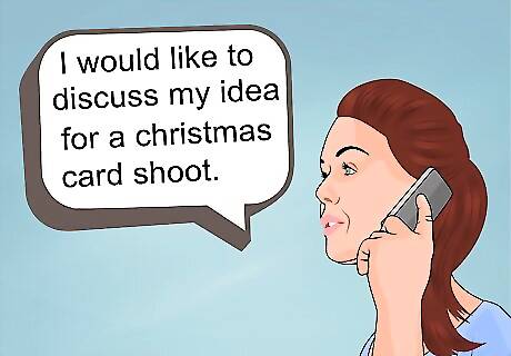 Consult your photographer about your ideas. Before hiring a professional photographer, you should meet with them or speak on the phone in order to discuss your ideas for the shoot. If you have very specific ideas of what you want, be sure to let your photographer know so that they can advise you as to their feasibility. If you don’t have much direction, ask the photographer for any ideas they might have, or what their typical Christmas card concepts look like. Also be sure to ask what kind of refund or re-shoot options they offer. Due to the highly digitized nature of contemporary photography, many photographers will offer free refunds or options to re-shoot your cards at a discounted rate if you’re unhappy with the results.