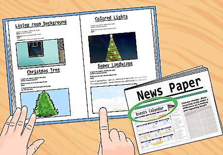 Choose a setting for the photo. Once you know what genre you’re going for, you can decide where you want to shoot the photo. Traditional arrangements often feature simple living-room backgrounds of fireplaces, colored lights, and Christmas trees, but you don’t have to limit yourself to these options. If you live near some snowy landscapes or pine or spruce forests, you could set up an outdoor photo shoot with everyone bundled up in winter gear. Or, if you’re more of a city mouse, urban landscapes such as brick facades, old trains, and parks can make for beautiful and unique backdrops to your photo. You can also check out the events calendar in your local newspaper for any upcoming parades, winter festivals, or concerts which could provide effective backdrops for your photo.