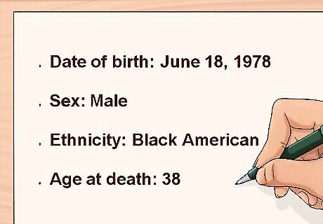 Include as much medical information as possible. The more information you can provide, the easier it will be for the doctor to reconstruct what conditions your family members may have had. Try to include as much of the following as you can for each person: Date of birth Sex Ethnicity — this can be helpful because some ethnic groups have higher risks for particular conditions Age at death Cause of death Medical conditions — this includes physical and mental health conditions and intellectual disabilities Age when the condition was diagnosed Pregnancy complications such as miscarriages, birth defects, fertility problems Details about the person’s lifestyle, such as drinking or smoking If there is any possibility that your parents are related to each other through blood. If the person was with physical malformations at birth that was, repaired such as cleft lip