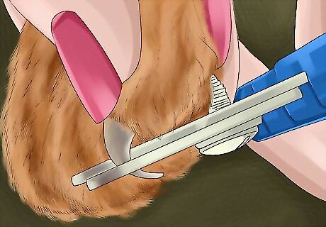Trim your cat's nails. It is important that you trim your cat's nails on a regular basis. To trim your cat's nails, take one of the cat's paws in one hand and the nail clippers, either the ones made for pets or ones made for humans, in the other hand. Clip off only the tip of the nails, as cutting the nails back too far increases the risk of hitting the quick, the vein inside the nail. Keeping your cat's nails trimmed minimizes the risk of them scratching up your furniture but it also minimizes the chance of them snagging a nail and injuring their paws. If you can only get to a few nails at a time don't worry about it. Gradually work on clipping the cat's nails a few at a time until they have all been clipped.