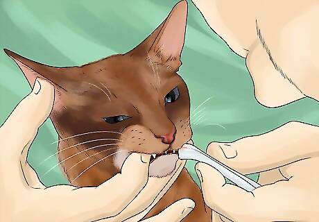 Clean your cat's teeth. Somali cats are prone to periodontal disease, so you need to care for their teeth by brushing them regularly. Use a pet toothbrush and a toothpaste that is approved for use on cats. These products are usually available at any large pet supply store. Additionally, you should schedule occasional teeth cleanings with your vet for a for complete dental treatment. Brushing a cat's teeth can be difficult. It can take a long time for a cat to accept this activity. If you are raising a kitten, start brushing its teeth early, so that as the cat grows up it is used to getting its teeth brushed.