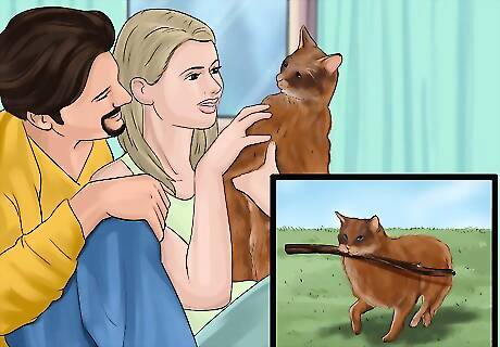 Spend time with your cat. Somali cats are very intelligent and affectionate cats, which means that they love spending quality time with their people. Try training your Somali to fetch its toys, to open boxes or doors, or just to leap after a string you flick around in front of it for play time. Whatever you do, your Somali will be happy about the stimulating time spent with you. These cats should not be left alone for long periods of time every day. If you do, you are likely to come home to open cupboards and other doors. This is a sign that your cat may be bored.