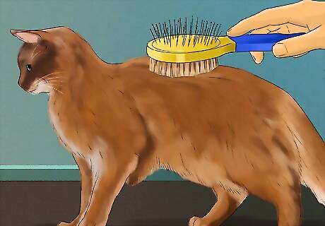 Brush your cat every few days. The Somali's long fur and dense undercoat requires frequent brushing to keep it clean and tangle free. While you don't have to brush it every single day, brushing the cat every other day will minimize the chance of tangles developing. Use a long-toothed metal comb or a fine-toothed brush to brush your cat. These can get to the cat's dense undercoat, removing fur that would otherwise end up matting or getting on your furniture or around your home.