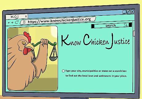 Check your local laws and regulations on keeping chickens. Some municipalities will not allow you to keep chickens, or they might have some strict rules on keeping them. Before you start spending money on chickens and supplies, take the time to search your local laws and regulations online. Some places will not allow you to keep roosters because they are too noisy. This will affect you if you want to breed your hens, but it won’t prevent you from keeping hens for eggs or meat. If you plan on keeping a lot of chickens, see if there is a maximum number of chickens you can legally keep first. Depending on your circumstances, you might also need to check with your landlord or homeowner's association.