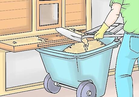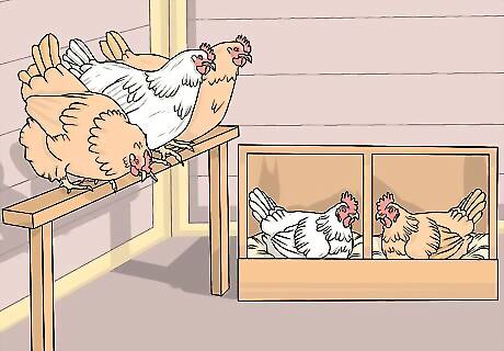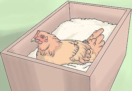 Provide dry dirt or sand for your chickens to dust bathe in. Dust bathing is a way your chickens clean themselves, and it also prevents parasites such as mites or lice from infesting your chickens. If your chickens are free-range, they might have access to sufficient dirt already.