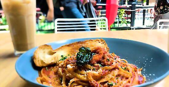 Include the surroundings if you’re in a scenic location. Instagram food photos are about a lifestyle as well as the food. If you’re visiting a lakefront, beach, or the mountains, arrange your food so the background shows in the photo. This enhances the mood of your post.