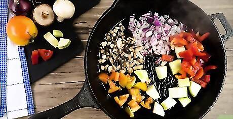 Cook a meal using colorful ingredients if you’re photographing your own food. Start planning the photo before you even plate the food. Choose meals with different colors and textures that will catch a viewer’s eye on Instagram. Try to mix and contrast colors so your photos are as vibrant as possible. Even if your main dish isn’t colorful, try adding some more vibrant side dishes. Steak, for instance, is not especially colorful, but a side salad with lots of different ingredients introduces new colors into the frame. Cut fruit is another great way to add color and shine to your photos.