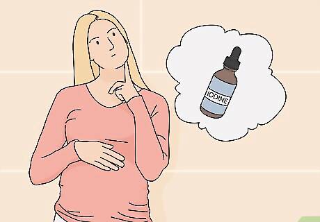 Talk to your doctor about taking iodine drops. If you determine that you are at higher risk for an iodine deficiency and have experienced any of the symptoms, talk to your doctor to determine if you should take iodine drops. Your doctor can assess whether you have an iodine deficiency and, if so, whether iodine drops are the proper treatment plan for your specific circumstances. In addition, your doctor may also determine that you should take iodine drops to help treat thyroid cancer and fibrocystic breast disease, or to help protect your thyroid from radiation in the event of a nuclear emergency. While iodine drops are available without a prescription, taking them without instructions from your doctor could put you at risk for developing hyperthyroidism, a condition that occurs when your thyroid produces too many hormones.