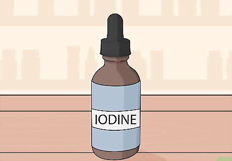 Pick up the iodine drops recommend by your doctor. If your doctor determines that you should take iodine drops to help treat an iodine deficiency, thyroid cancer, fibrocystic breast disease, or to protect you against radiation poisoning, they will likely recommend a specific brand and dosage. Iodine drops are available without a prescription at most pharmacies, as well as many online retailers. A bottle of iodine drops generally consists of a small percentage of iodine (often about 2%) in distilled water. The microgram dosage per drop, however, can vary, so many sure that you pick up the exact iodine drops recommended by your doctor.