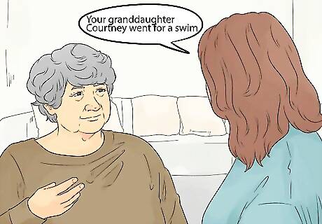 Refer to people by name. If you're updating your family member about others, say their names. Avoid saying “he” or “she” or “they” and instead, spell it out for your loved one. Say, “You grandchildren Courtney, Heather, and Rachel all went boating together last weekend. Courtney, Heather and Rachel had a really nice time and enjoyed being in the water.” You can also state relationships if that's helpful. For example, say, “This is your grandchild, Sophia, your son Paul's child.”